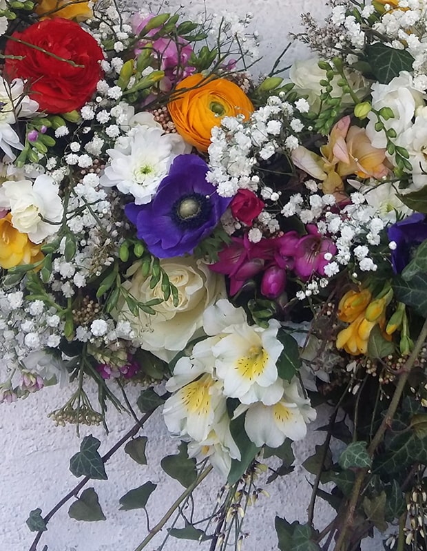 Vijenac (promjera 90 cm) se sastoji od sezonskog cvijeća u kombinaciji s dekorativnim zelenilom.