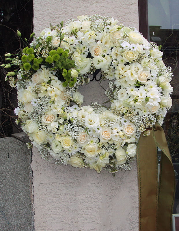 Vijenac (promjera 120 cm) se sastoji od sezonskog cvijeća u kombinaciji s dekorativnim zelenilom.